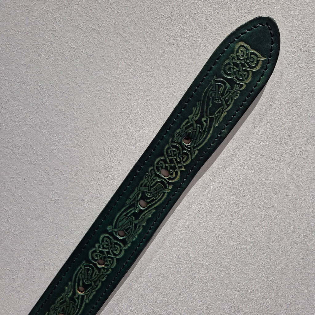 Please see the photo for design and colour, please note this belt is a lovely forest green colour, the photo doesn't do it justice!
